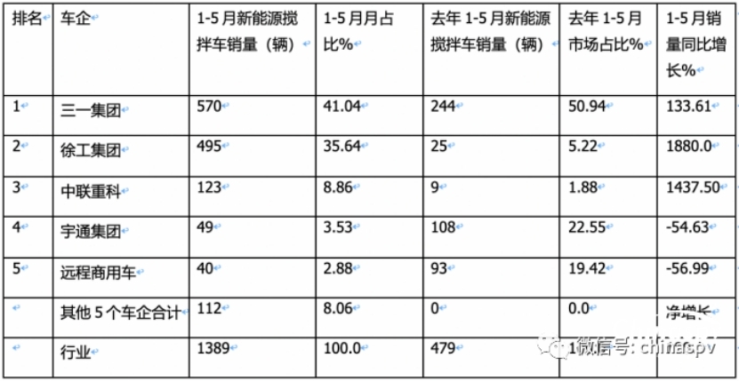 總之,今年1-5月的新能源攪拌車是新能源重卡中表現(xiàn)最好的細(xì)分市場。