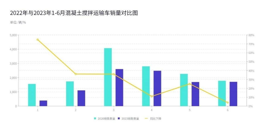 受國(guó)內(nèi)需求收縮、供給沖擊、預(yù)期減弱三重壓力影響,近期經(jīng)濟(jì)下行壓力較大,固定資產(chǎn)投資下滑,很多工程建設(shè)項(xiàng)目停滯或者延緩。在大環(huán)境的影響下,混凝土攪拌運(yùn)輸車這一工程建設(shè)的“主力軍”銷量受到重創(chuàng),需求大幅度減少。2023年上半年銷量不足1萬輛,同比下29.6%。