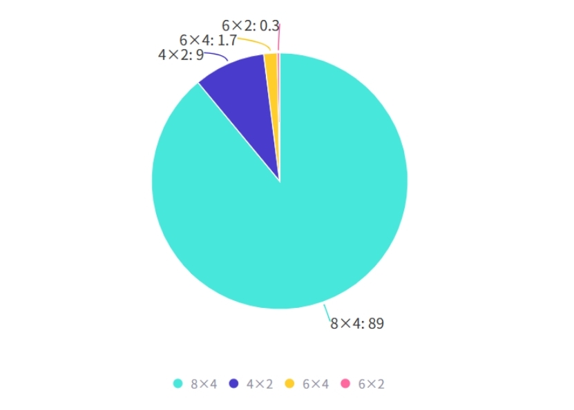 從驅(qū)動(dòng)方式來看,8x4的混凝土攪拌運(yùn)輸車占比最高,占比89%,4x2的攪拌車占比最小,僅為9%。