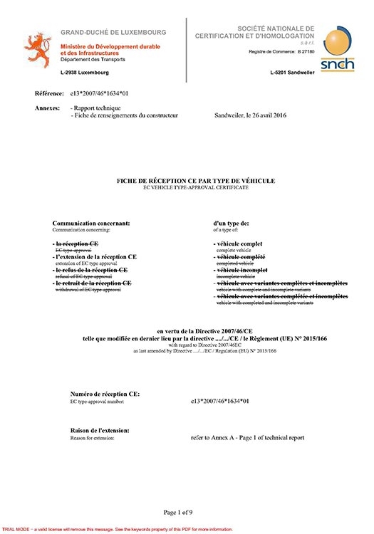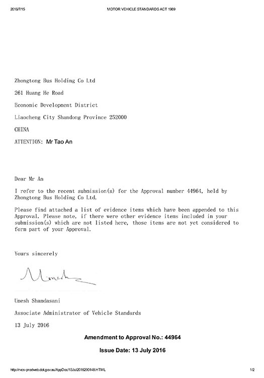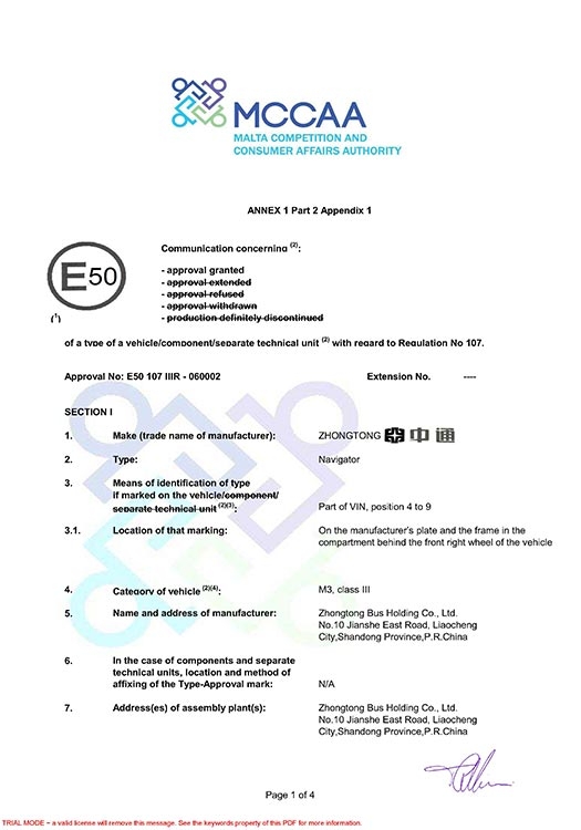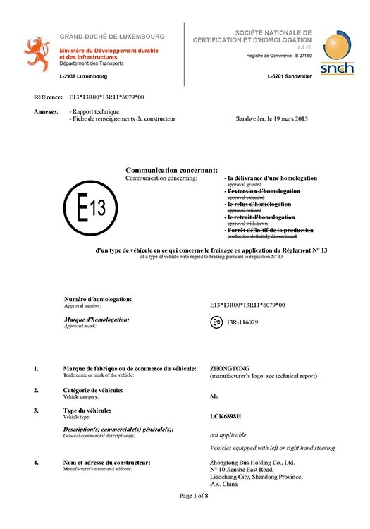 • Сертификат WVTA для автобуса LCK6128H