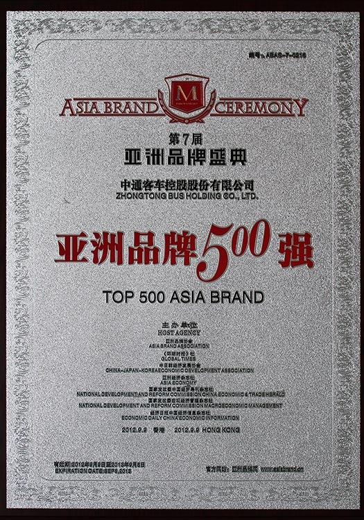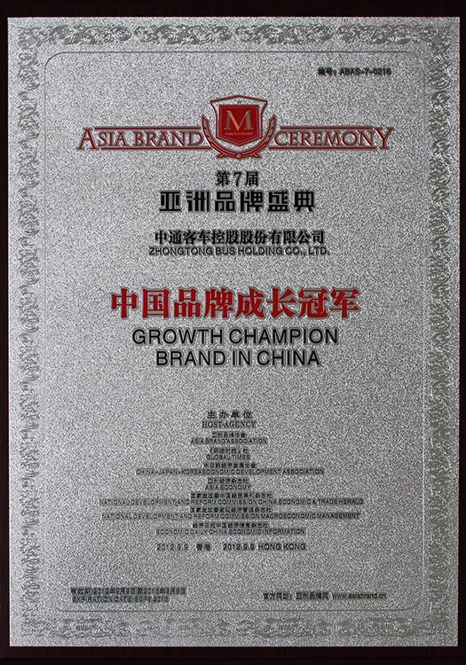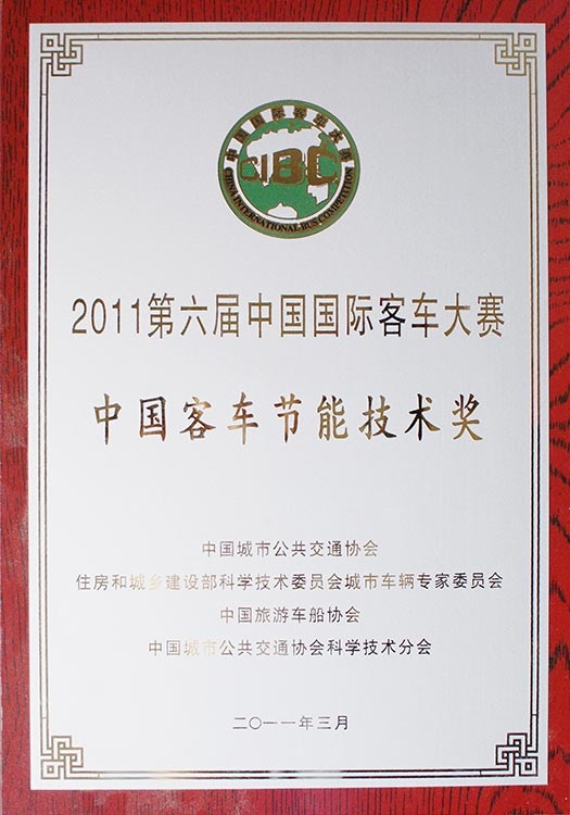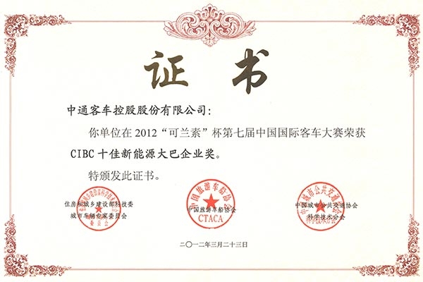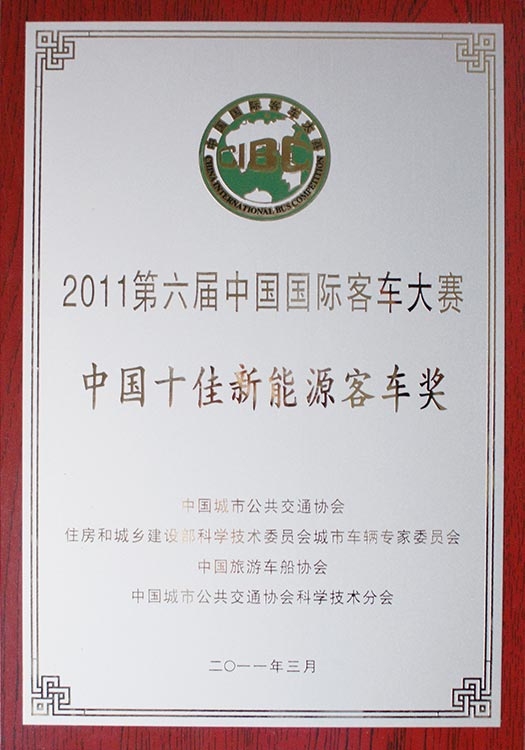 • Награда CIBC "Топ-10 китайских производителей автобусов на электрической тяге 2012 года"