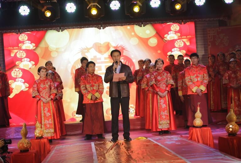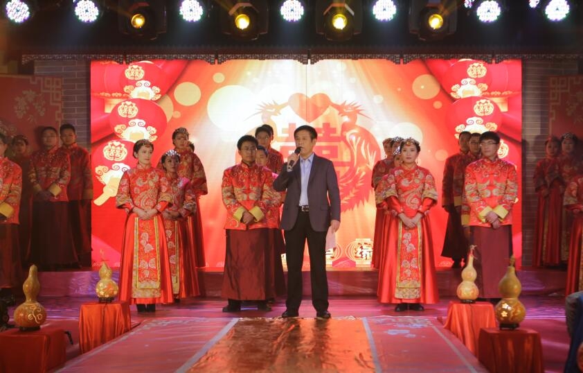 婚禮儀式現(xiàn)場,傳統(tǒng)喜慶的舞蹈與震撼現(xiàn)代的燈光舞臺秀開場,16對新人攜手登上舞臺,拉開了婚禮精彩的序幕。伴隨著儀式的進行,公司總經(jīng)理孫慶民為新人證婚,公司董事長李樹朋為新人主婚并表達了對新人的美好祝愿。公司領(lǐng)導(dǎo)的殷切關(guān)懷承載著企業(yè)對員工的寄托予希望,在員工成長的同時,企業(yè)實現(xiàn)和諧發(fā)展。
